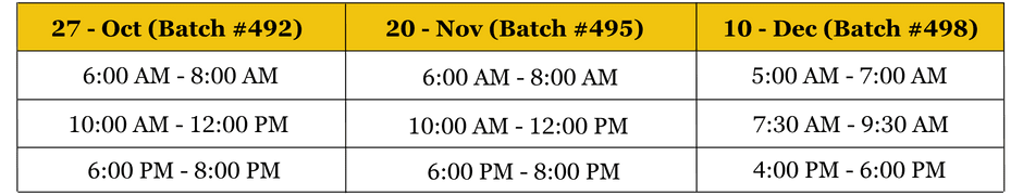 - Weekdays Business session / Teaching Skills : After end of Syllabus
